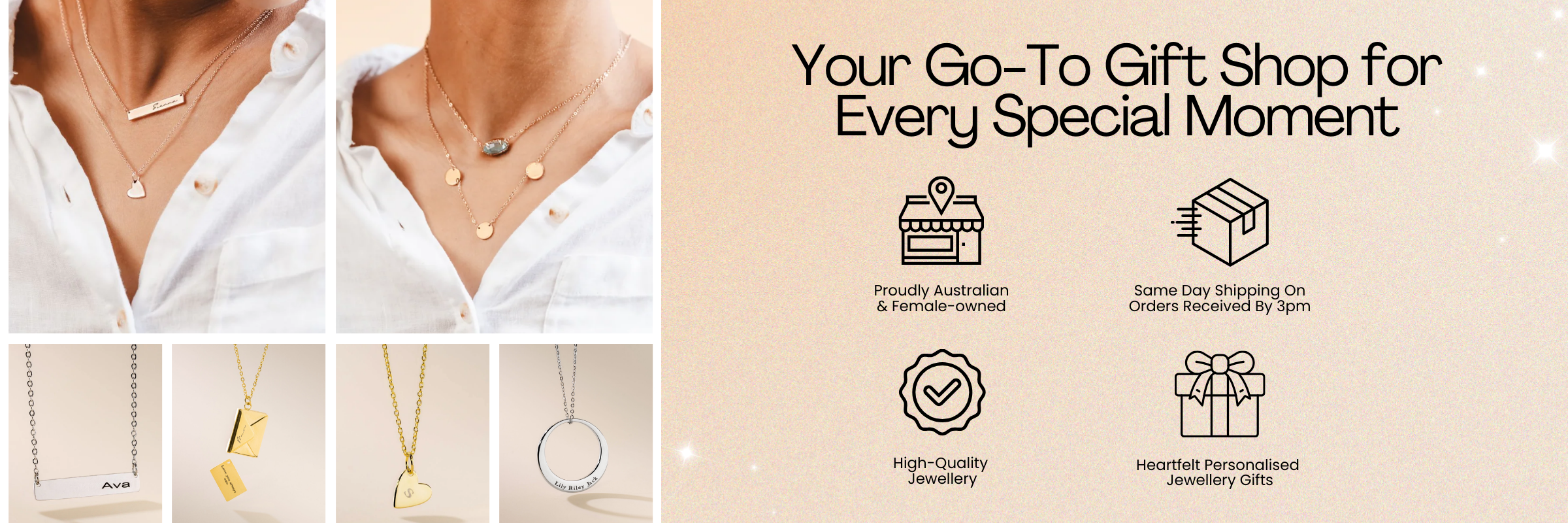 Explore our gift collection featuring personalised necklaces, elegant rings, and timeless earrings...